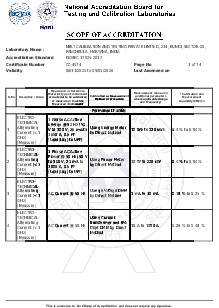 To view the Certificates and Scopes of Accreditation available at NABL's website, kindly visit these links- Testing / Calibration.